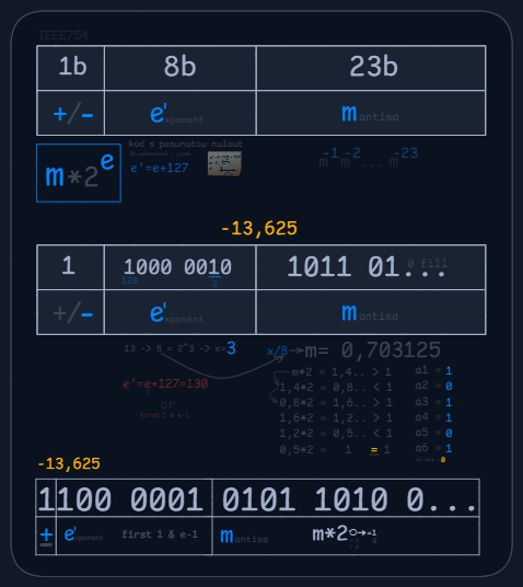 up:: UPP x:: map Hammingova vzdálenost Resource 🎥 3Blue / Ben Neso 📚 🎥, dMin P2, C3 (CP4) Čísla Int (celé) (maturita) Doplňkový kod + & - Sibi 🎥 * & / Float (decimal) (maturita / note ) IEEE754 IEEE754 → 32b